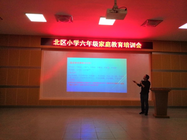 六年級的孩子們在北區(qū)小學(xué)已經(jīng)學(xué)習(xí)生活了六年,而這一年又是孩子們升入中學(xué)前最重要的一個學(xué)期,學(xué)校對畢業(yè)班的工作也是極為重視,六年級的班主任精心籌備、布置好干凈整潔的室場,使廣大家長一走進教室就能感受到一種融洽、和諧的氛圍。本次家長會分兩個議程:一是是本學(xué)期新轉(zhuǎn)來的劉云霄校長做《遵循規(guī)律,關(guān)注成長》的家庭教育專題講座。二是分班和課任教師交流孩子在學(xué)校的各種表現(xiàn)。