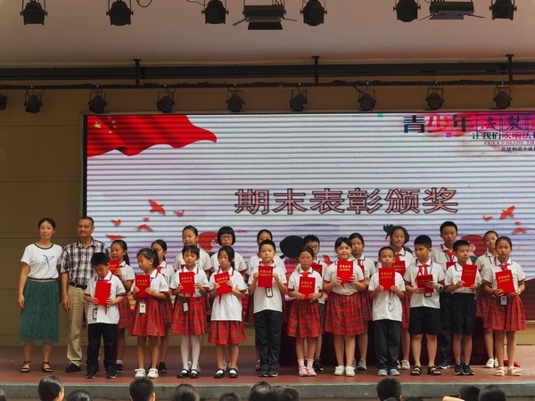 先是舉行隆重的升旗儀式,接著董旌武校長對本學期的教育教學工作進行簡單的小結,并提出假期的注意事項。然后學校對本學期表現優秀的學生進行了表彰。緊接著學校專門邀請了小欖鎮升平派出所陳文鍵警長為全校師生作假期法制、禁毒、安全教育,陳警長通過生動的圖片、鮮活的事例,深入淺出地講述了青少年如何預防抵制毒品等方面的內容,為全體師生上了一節很有深刻意義的禁毒教育課,呼吁同學們一起行動起來,珍愛生命,拒絕毒品、快樂成長。