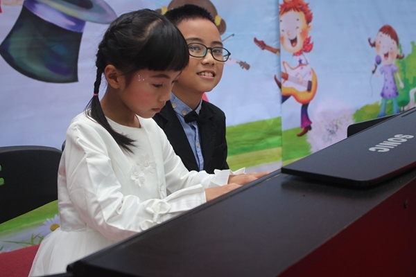 不僅舞蹈種類豐富多樣,有現在最流行的舞蹈98K,還有宣揚少先隊員精神的中國舞《燦爛的陽光下》,還有街舞等。樂器的種類也豐富多樣,有小吉他尤克里里《夜空中最亮的星》,有鋼琴表演,還有爵士鼓等等……。德星小學的特色樂器是口風琴,在藝術節中每個年級都把自己練習的曲目表演了一遍。如,二年級的《母雞叫咯咯》,五年級的《嘎達梅林》,六年級的《龍的傳人》……。從組織發動到節目演出,各年級、各班級十分重視,認真準備,廣泛參與。
