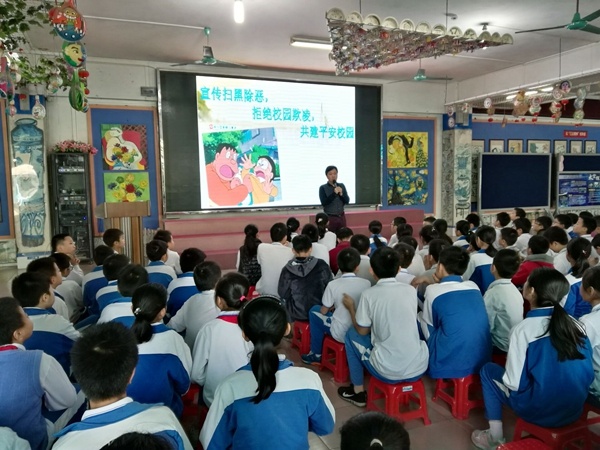 講座中,學校專門邀請了法制副校長凌勇警長,為五六年級師生作專題講座,凌警長結合違法犯罪案例,用通俗易懂的語言向學生闡述了什么是“黑惡勢力”以及黑惡勢力違法犯罪的種種表現、社會危害以及面對“黑惡勢力”如何運用法律進行自我保護等內容。告誡全體同學務必謹慎交友,加強法律知識學習,提高自我控制能力和辨別是非能力。最后,劉主任希望同學們從身邊做起,從小事做起,做文明的德星學子,積極參與到"掃黑除惡"行動中來,拒絕校園欺凌,營造良好氛圍,構建平安和諧校園,為學生健康成長保駕護航。