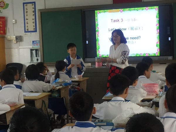 本節(jié)課陳老師通過學校午餐引出各種食物單詞,拓展更多食物讓學生積累更多單詞,發(fā)散學生思維。并滲透健康飲食的理念,然后通過做食物,引導學生需要什么東西做,引出本節(jié)課重點句型:What do we need? We need some___.最后組織學生開展小組活動,分享自己的食物,要求學生用本節(jié)課所學句型表達出來。展示時,孩子們興趣高昂,落落大方,表演生動有趣,課堂迎來了教學的高潮,學生們在歡聲笑語中結(jié)束這節(jié)課。本節(jié)課陳老師運用了多媒體課件、食物、卡片等多種手段創(chuàng)設(shè)了生動有趣的教學情景,教學方法多樣有效,做到師生互動,生生互動,合作學習,調(diào)動了每一個學生的參與熱情。學生們課堂表現(xiàn)積極,課堂氣氛活躍,教學效果非常好。