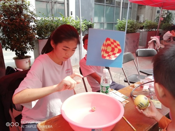 在11月2日全天的科學(xué)互動體驗活動中,由楊英明老師組織帶隊,績東一小學(xué)為此次的活動精心準(zhǔn)備了“飄浮的魔方”和“倒立不倒翁”兩項精彩的科學(xué)體驗活動。這兩項活動受到了廣大家長和孩子們的喜愛,在這兩項科學(xué)體驗活動的攤位前屢次出現(xiàn)了排長龍的情況,人群中不時發(fā)出陣陣笑聲和驚呼聲,真正的讓大家能在科學(xué)中得到樂趣。