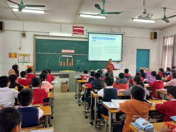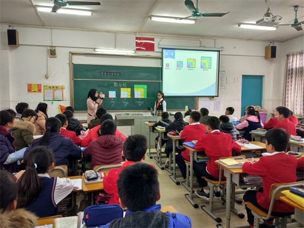 本次教研活動主要圍繞統計與概率和數學廣角進行。首先全體參加教研活動的老師聽取了績東一小學陳柳娟老師執教的六年級數學《數與形》。課堂上陳老師引導學生以形助數、以數解形、數形互助,讓學生充分感受“形使數直觀,數使形精確”,領悟數形結合的思想方法。第二節課是由來自四沙小學的陳金旋老師執教四年級數學《條形統計圖》。陳老師既充分利用教材又敢于跳出教材,以本校老師支教為主線設計教學,巧妙地將中山的博愛精神滲透到課堂中,在孩子們的心中播下大愛的種子。