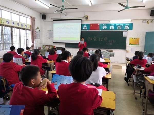 班會課上,高年級的全體班主任發放《認識“掃黃打非”,抵制文化垃圾 》的宣傳小冊子,讓學生認真閱讀,并借此契機教育學生健康上網,遠離文化垃圾,不進游戲廳、網吧,不瀏覽涉黃網站、網頁;講解如何鑒別非法出版物及其危害,鼓勵抵制購買盜版書籍、非法出版物和盜版音像制品等。同時,各班級及時檢查學生使用的學習輔讀物,嚴把非法出版物進校園、進班級的關口,杜絕各類侵權盜版學輔資料和其他制品流入校園。學生閱讀《認識“掃黃打非”,抵制文化垃圾 》小冊子后,班級還組織學生現場談感受,撰寫“凈化校園,抵制文化垃圾,從我做起”的倡議書。