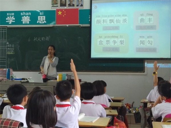 老師們先集中于三(4)班聽周麗菲老師執教的研究課《秋天的雨》,這是部編版三年級上冊一篇文質兼美的文章。周麗菲老師思路清晰,第一課時的教學環節設計層層深入,引領著孩子們學習生字,朗讀課文,梳理文章脈絡,積極動口、動手、動腦探索,課堂上書聲瑯瑯,孩子們學習興致高漲。