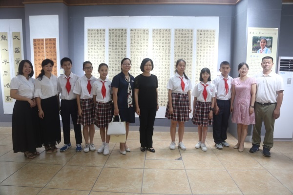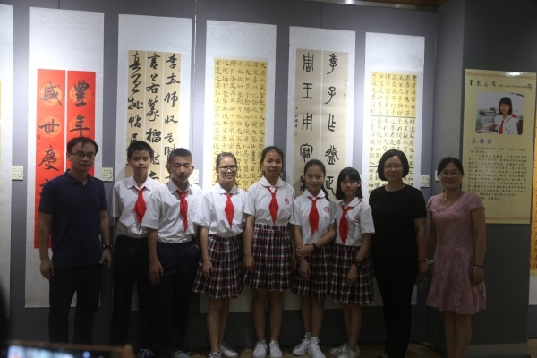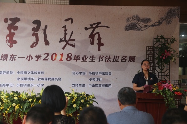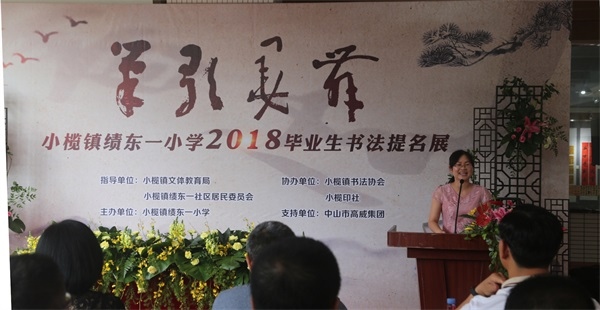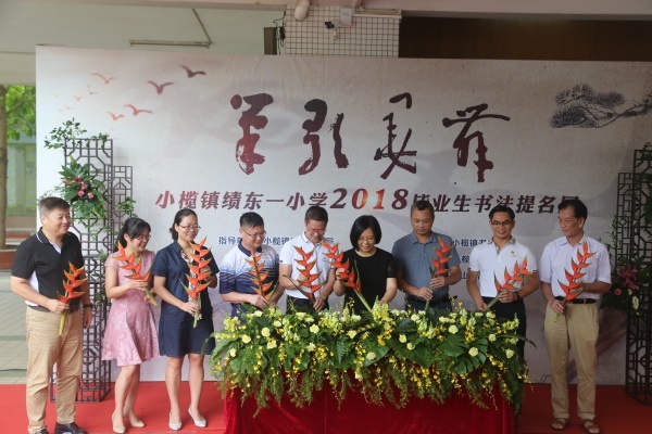 書法雅尚,翰墨千秋。為傳承中華民族優秀傳統文化,培養學生健康高雅的審美情趣和藝術修養,豐富校園文化生活,打造墨香校園, 6月12日上午,“筆歌墨舞——績東一小學2018畢業生書法提名展”正式開幕。出席本次活動的領導嘉賓有小欖鎮黨委副書記馮結紅女士,小欖鎮文體教育局局長盧穎禧先生,廣東省書法協會理事、小欖鎮書法協會會長駱培華先生,小欖鎮績東一社區黨委書記何添廣先生,小欖鎮教育事務指導中心副主任鄧永飛先生,小欖鎮績東一社區居委主任黃慧賢女士,小欖鎮關工委常務副主任關仿煊先生,績東一小學退休校長李寶瓊女士,以及小欖鎮書法協會的專家、小欖鎮關工委的領導、兄弟學校的校長和老師、家長朋友們和績東一小學高年級的師生。