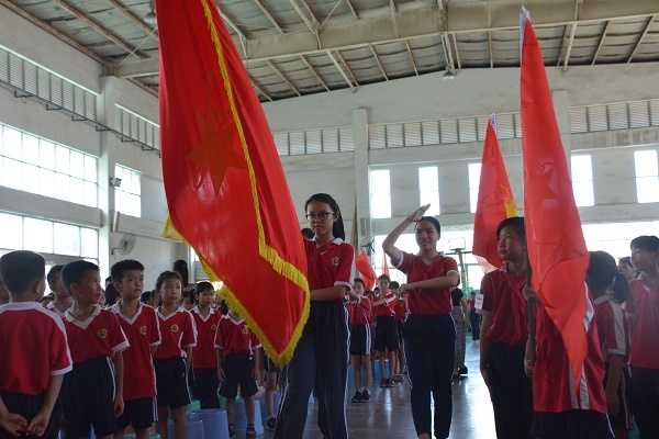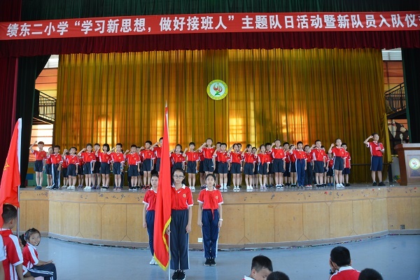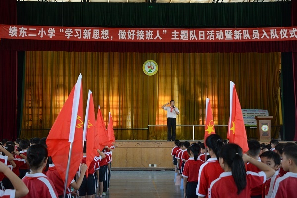 又是一個陽光燦爛的日子?;鸺t的隊旗高高飄揚,指引著少先隊員們前進的方向。2019年6月21日星期五,在中山市小欖鎮績東二小學的體育館里,舉行了“學習新思想,做好接班人”主題隊日活動暨新隊員入隊儀式。