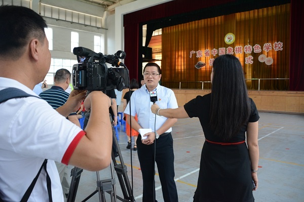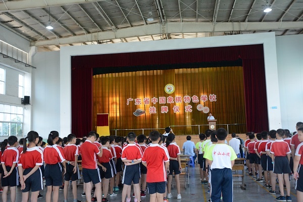 六月荷花香滿湖,紅衣綠扇映清波。2019年6月20日,在這艷陽高照、蜂蝶帶香的時節(jié),小欖鎮(zhèn)績東二小學隆重舉辦廣東省象棋特色學校揭牌儀式,小欖鎮(zhèn)電視新聞臺前來拍攝現(xiàn)場。中山市象棋協(xié)會常務副會長李銳泓先生、小欖鎮(zhèn)文體教育局體委主任黃應幫先生、績東二社區(qū)黨委書記麥焯枝先生、小欖鎮(zhèn)象棋協(xié)會會長、績東二社區(qū)黨委副書記兼居委會主任張全輝先生、熱心贊助人士中山市匯豐城置業(yè)有限公司蔡梓豪先生、中山市象棋協(xié)會秘書長劉漢生先生、績東二社區(qū)黨委副書記李冰女士、小欖鎮(zhèn)象棋協(xié)會秘書長黃鎮(zhèn)興先生、小欖鎮(zhèn)象棋協(xié)會的國家級象棋大師黃仕清先生、社區(qū)的兩委領導、小欖鎮(zhèn)11所兄弟學校的校長、和三四年級全體師生參加了這隆重的活動。