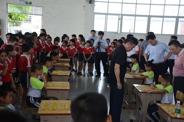 績東二小學李彥峰校長為本次揭牌儀式致辭。他回顧了學校的象棋特色發(fā)展歷程和措施:1.把象棋課列為一二年級的普及課;三-六年級開展提高興趣班;到今年為止,學校已經(jīng)有2/3的學生參加過象棋課程;2. 擁有(持有中國象棋協(xié)會教練員證書)的專職象棋教練員1;3. 定期訓練、定期舉行校內小型比賽、定期邀請國家大師黃仕清與學生棋手多交流切磋;4.積極參與鎮(zhèn)內、市內、省內的等大型比賽;李彥峰校長還介紹了學校所取得的省市冠軍等成績。