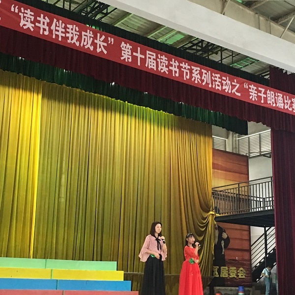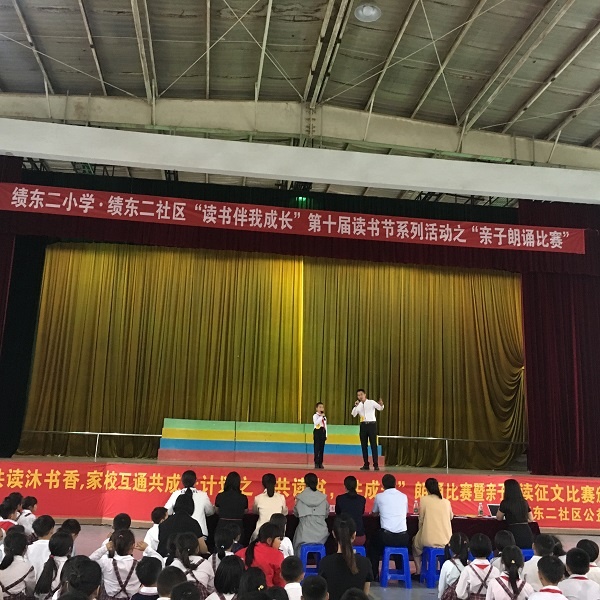 隨著市立項(xiàng)課題《基于單元主題閱讀的小學(xué)生閱讀能力培養(yǎng)實(shí)證研究》的深入,學(xué)校讀書(shū)節(jié)的開(kāi)展更有聲有色,學(xué)生、家長(zhǎng)參與活動(dòng)更加積極。5月6日下午,小欖鎮(zhèn)績(jī)東二小學(xué)在體育館內(nèi)進(jìn)行了一場(chǎng)隆重的視聽(tīng)盛宴——“共讀書(shū),共成長(zhǎng)”親子朗讀大賽。12個(gè)家庭以經(jīng)典美文為主題進(jìn)行朗誦,這是我校第一次以親子形式開(kāi)展的誦讀活動(dòng)。