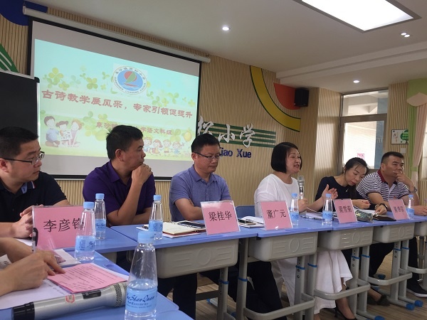 為了弘揚和傳承中華民族燦爛文化,激發學生學習古詩的興趣;進一步優化古詩課堂教學架構,探索有效的古詩課堂教學方法,也為推進市立項課題《基于單元主題閱讀的小學生閱讀能力的實證研究》深度進行,推進培養學生閱讀能力的策略研究,4月11日,小欖鎮績東二小學李彥峰校長和課題主持人何小玲主任受邀到阜沙鎮羅松小學參加市教研室“梁雪菊名師工作室”教學研討活動。