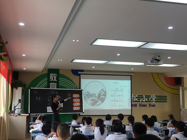 “古詩教學展風采,專家引領促提升”,本次教學研討活動由羅沙小學葉露老師執教《小池》,雪菊工作室成員董春雷老師執教《池上》。葉老師教學思路清晰,課堂上多種形式朗讀,在反復朗讀中,學生熟讀成誦;董老師語言童趣,識字方式多樣,重在授予學生學習的方法。