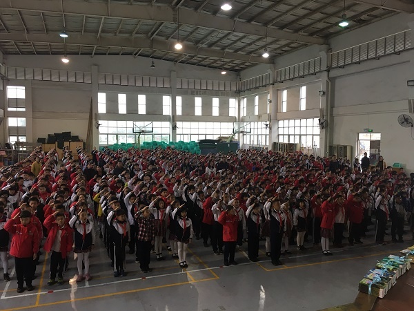 小主持簡單的開場白之后,是隆重的升國旗儀式。剛榮獲市級素養(yǎng)大賽一等獎的布雅詩老師向全校師生展示古箏演奏,一曲大氣磅礴的《精忠報國》拉開序幕;然后是三(2)班和四(2)班的同學古詩吟誦。接著,李彥峰校長做了讀書節(jié)致詞,他希望能通過本次活動,激發(fā)師生讀書熱情;語文科組長黃秀萍老師宣讀了讀書節(jié)的活動安排,他們都號召同學們要利用空閑時間拿起書本,要養(yǎng)成好讀書、讀好書、讀整本書的習慣。最后是贈書儀式,本次活動在各班代表上臺接受學校對同學們甜蜜的饋贈中結束了。