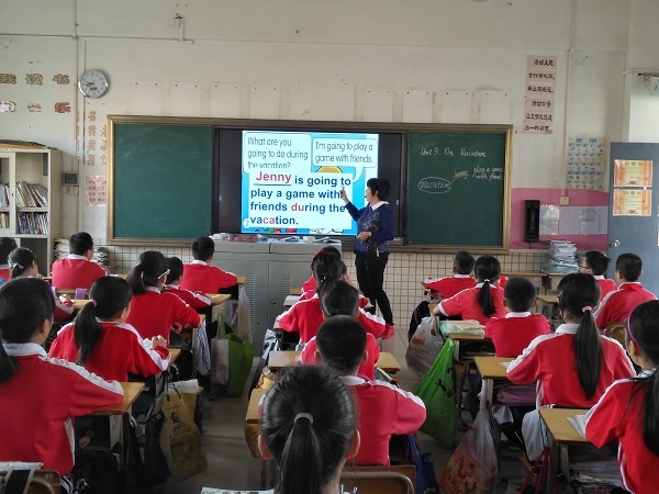 黃春玉老師老師在的授課內容是五年級下冊Unit3 On Vacation的的故事教學部分,引出本節課的重難點知識,然后分段進行情節表演,使學生對知識點了解更全面。本節課教學活動設計豐富多彩,每個步驟環環相扣,學生學習興趣濃厚,課堂氣氛活躍,小組合作自主學習,小組討論的頻率非常高,最后的小組展示和情感升華是課堂最大亮點。