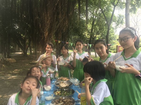 升旗儀式結束后,二十輛大巴載著全校師生先到南海博物館,學生在南海博物館里欣賞各具特色的展廳,了解了《南海記憶》、《南海群英》、《館藏書畫》、《廣府風情》等南海的歷史文化。接著又到三水荷花世界環園觀賞水中的碧波仙子——荷花,在自然的絕色美景中開始參觀。參觀結束后,學生按分好的小組開展野炊活動,學生分工合作,有條不紊,菜香陣陣,在場的游客贊不絕口。最后就是暢玩游樂項目,學生在園內享受著十幾種新穎、刺激機動游樂項目,逍遙港灣、魔幻穿梭、水上漫游、火車奇遇記、颶風旋轉塔、雙層轉馬、魔力風火輪、沖上云霄、奇夢飛船、歡樂對對碰、無敵小旋風、彩云飛機……帶來的不一樣的刺激感,處處充滿歡樂的笑聲。