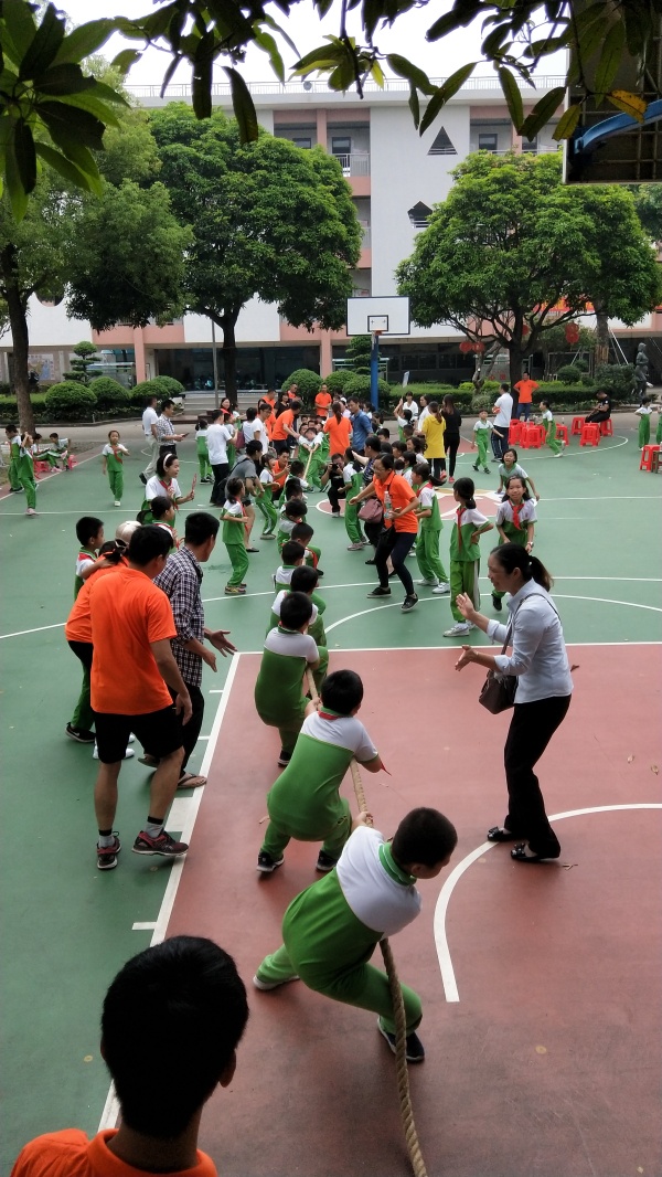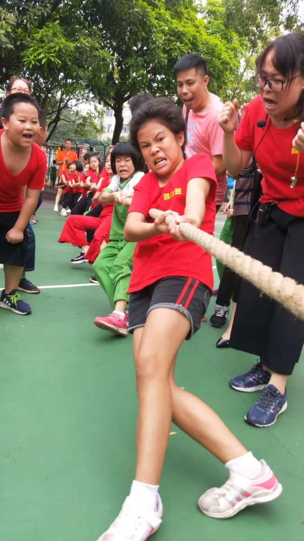 整個賽場的氣氛緊張而有激烈。隨著體育老師的一聲哨聲,六年級兩個班首先進行對決,雙方學生信心滿滿,相互怒視,誰也不肯想讓。僵持局面下,誰也不肯放棄。有的咬緊牙關,有的向后傾斜,有的甚至閉上眼睛恨不得用上自己所有力氣!大家為集體的榮譽而戰,只為那跟彩帶能離自己更近一些!比賽牽動著老師,同學,家長們的心,在現場氣氛的帶動下,連校長都毫不猶豫地加入了啦啦隊隊伍中,傳遞著自己的一份力量,為運動員們吶喊助威,加油鼓勁。此時此刻,師生已經融為一體,學生和家長變得更加親密。