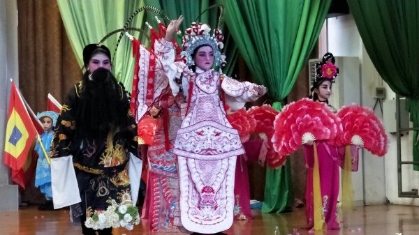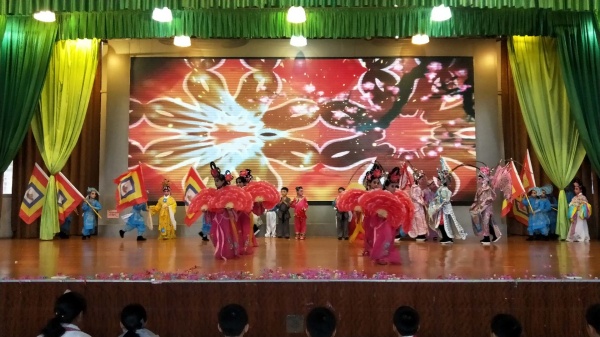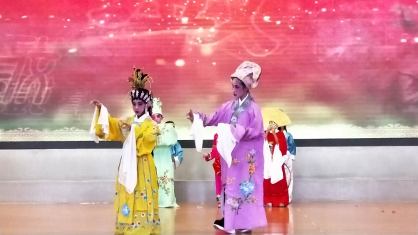 最后,績西小學挑選了精彩的節目粵劇行當《粵韻生花》、粵劇選段《花木蘭》和廣東舞蹈戲劇職業學院的獨唱《夢斷定情劍》、粵劇基本功展示《紅豆新苗展新姿》作為助慶表演。俗語講臺上一分鐘,臺下十年功,廣東舞蹈戲劇職業學院十六級學生表演的粵劇基本功精彩極了,演員們表演的翻跟斗、水袖舞、一字馬等高難度基本功動作和唱、做、念、打等基本功表演得淋漓盡致,讓師生們大開眼界,嘆為觀止,贏得臺下觀眾陣陣熱烈的掌聲。