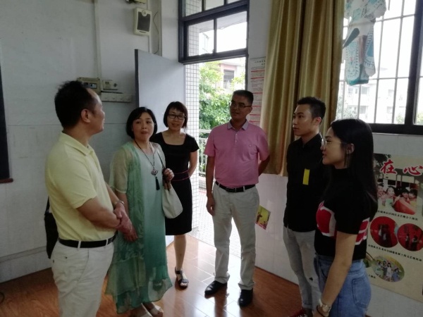 與會專家還在何桂雄校長的陪同下巡視校園。他們在粵曲專場宣傳報道駐足觀看。該展板真實記載著績西小學圍繞戲曲傳承文化普及和提高教育的歷程。聽著何校長的介紹,專家們給予充分肯定和鼓勵。一行人參觀了曲藝訓練室場,了解硬件軟件建設,對娃娃們演大戲的做法表示高度認同和贊許。