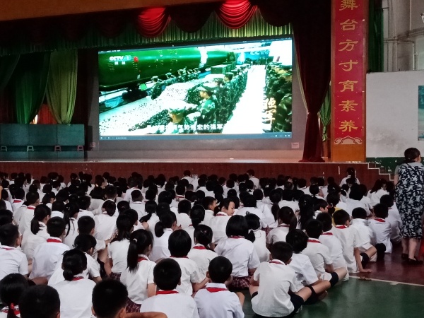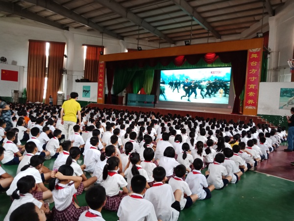 9月10日,伴隨清新的秋韻,績西小學組織全校師生在體育館觀看《強軍夢·家園情》國情教育片。