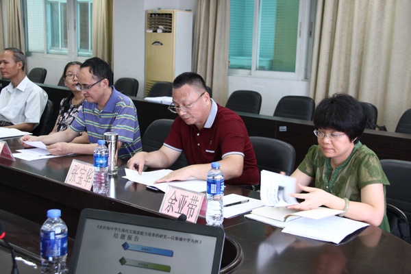 6月11日上午,驟雨初歇,暑風清涼,由中山市教研室語文教研員張寶華老師、古鎮曹步中學的余亞帶老師和小欖鎮華僑中學的吳祥東老師組成的課題鑒定專家團如期蒞臨美麗的菊城中學,對菊城中學語文教研組長李偉東老師主持的市級立項課題“學困生中考語文復習備考研究”進行了結題鑒定。會議由教導處黃明英副主任主持,陳清茂副校長及課題組8位成員參加了會議。