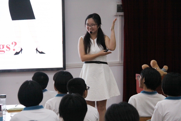 接下來同課異構授課的洪穎妍老師有活力有熱情,教學氛圍融洽自然。她以自己家舊物成災為背景,引導學生為自己提供處理這些舊物的建議,情景真實,學生有話可說,以此引出本課重點yard sale, 接著洪老師以視頻的形式,讓學生了解到舉辦一個成功的yard sale要做的事情,為本課最后的小組合作輸出環節奠定了基礎。她教學設計新穎,對學生學習層次有分析,對教學內容難度設置有梯度,為大家展示了實實在在的高效聽說課。