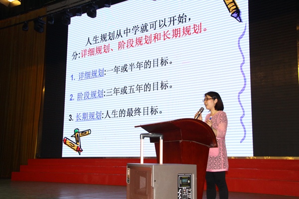 羅小萍老師先播放了一個關于“我的理想”的視頻,啟發同學們思考:我們應該有什么樣的夢想。接著用哈佛大學的一個跟蹤調查“目標對人生的影響”的數據,讓同學們直觀地了解與認識確定目標對人生的的重要性。然后羅老師對人生規劃作了闡釋,并簡要介紹了人生規劃的類別,即分為詳細規劃、階段規劃和長期規劃。