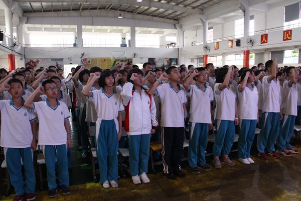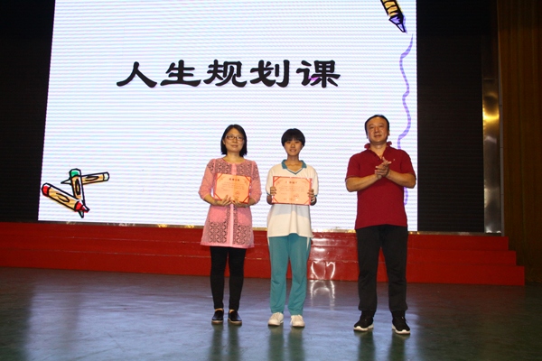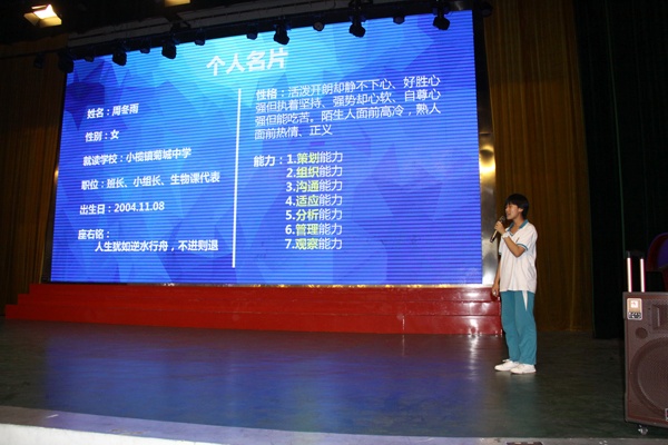 怎樣書寫自己的人生規劃書呢?羅老師從格式、步驟、內容等方面進行具體的指導。她指出,主要從以下六個方面制定:一、自我評估;二、人生理想或職業生涯目標;三、目標情況分析;四、職業定位;五、制定人生規劃或職業生涯路線;六、評估、調整與優化。接下來,羅老師請二(7)班周冬雨同學向同學們展示她寫的人生規劃書。這樣,既有方法講解,又有同學示范,讓初一同學們懂得了怎樣去規劃自己的人生,怎樣去書寫人生規劃書。然后羅老師又播放了劉媛媛演講的《寒門出貴子》視頻,點燃了同學們的熱情,激發了他們的斗志。最后同學們莊嚴宣誓:“……人生如此美好,青春豈能虛度!為理想奮斗,我定成功。”把講座推上高潮。