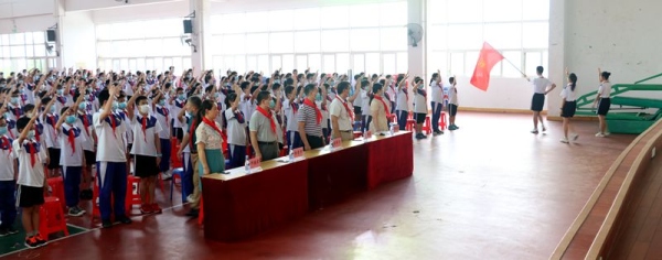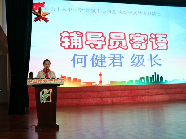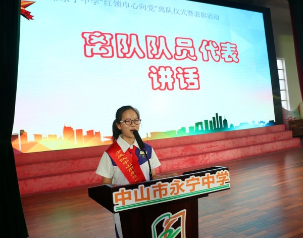 6月5日下午4點,中山市永寧中學初一年級在學校體育館,隆重舉行“紅領(lǐng)巾心向黨”離隊儀式暨表彰活動。陳清茂校長、楊青華副校長、德育處戴放良主任、羅結(jié)晶副主任等行政領(lǐng)導出席會議。