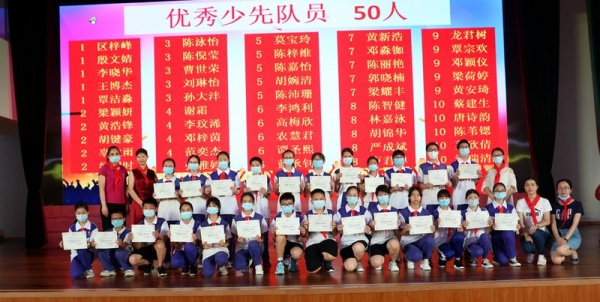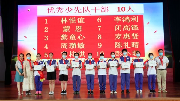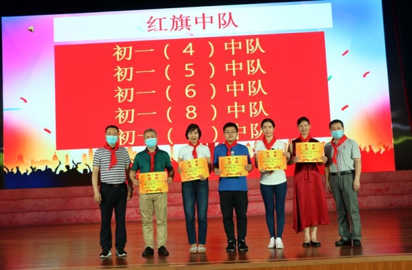 本學年以來,在初一年級全體教師的辛勤培育下,涌現(xiàn)出了一批陽光自信、博愛善良、勵志勤學的優(yōu)秀少先隊員,也培養(yǎng)出了一批責任心強、工作認真負責的優(yōu)秀少先隊干部。為了表彰先進,促進學生全面和諧發(fā)展,經(jīng)學校研究決定,對初一4中隊、初一5中隊、初一6中隊、初一8中隊、初一9中隊授予紅旗中隊榮譽稱號。對黃安琦等50名優(yōu)秀少先隊員、彭小珊等10名優(yōu)秀少先隊干部予以表彰。陳清茂校長等行政領(lǐng)導以及各班中隊輔導員上臺為他們頒獎。