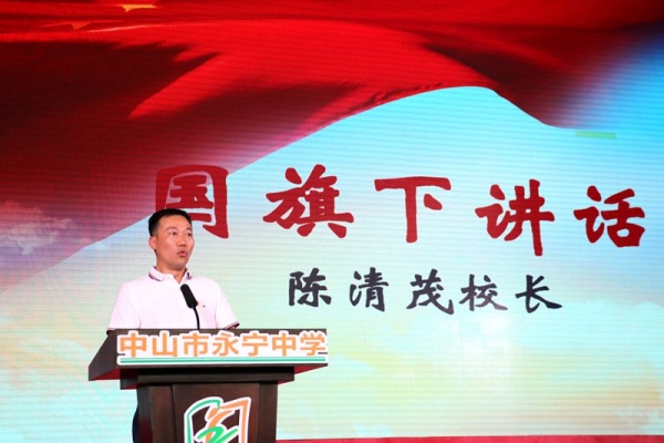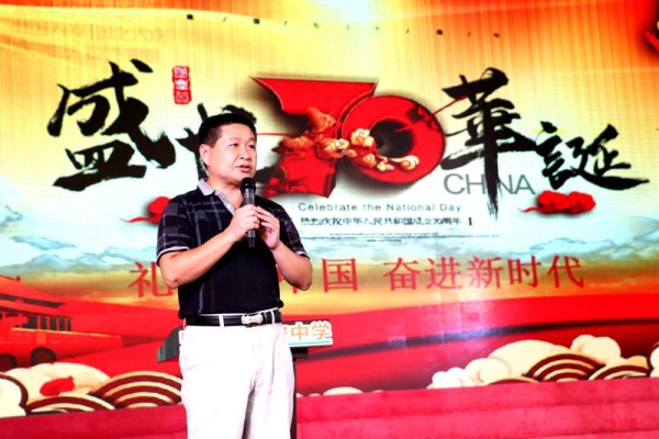 陳清茂校長在致辭中回顧了新中國成立70周年以來中華民族波瀾壯闊的光輝歷程,從毛主席在天安門城樓升起第一面五星紅旗,到中國人民富起來,再到國家聲譽響起來,從貧窮落后的國家發展到當今世界第二大經濟強國,我們取得了史無前例的成就,譜寫了雄偉壯美的篇章!陳校長殷殷寄望全體同學,只有國家強盛,才有我們美麗的家園和幸福的生活。同學們是祖國的未來,應肩負起振興中華的重任,從現在起,從身邊小事做起,勤奮學習,奮發圖強,與祖國同呼吸共命運,用自己的一言一行為祖國母親增光添彩!