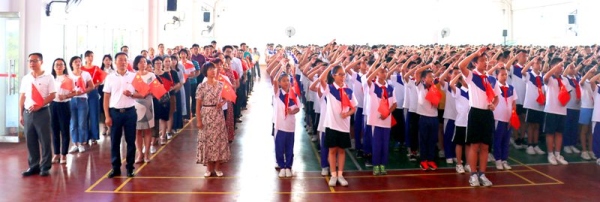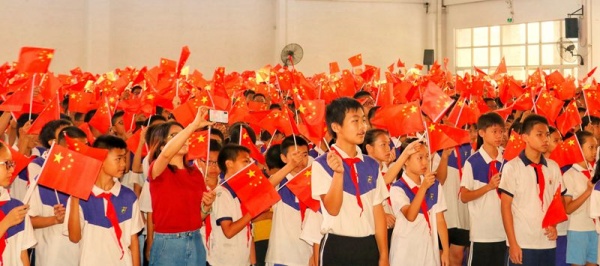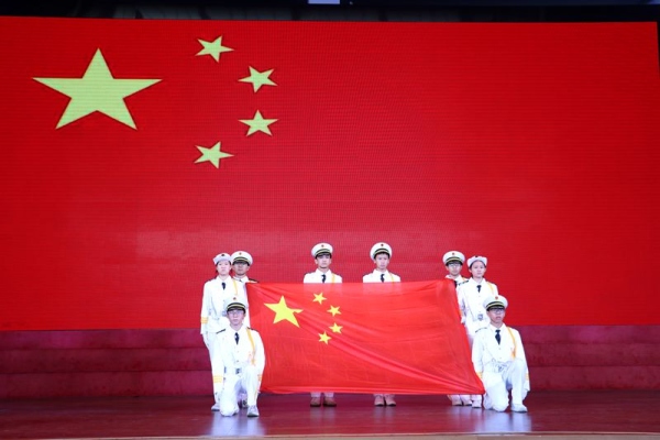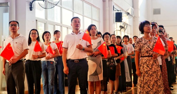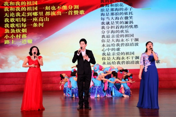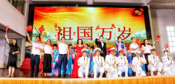陳煥然、李敏輝、鄧小紅三位老師聯袂傾情演唱的《我和我的祖國》,全校師生合唱《歌唱祖國》將慶典推向了高潮。全體師生揮動小紅旗,同聲歌唱,高呼“祖國萬歲”,祝福偉大的祖國生日快樂,國泰民安、繁榮昌盛!