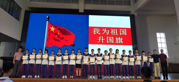在新中國成立70周年這個特別的日子,1580多名學子以飽滿的精神狀態迎來了新學期的第一天,全體師生共同升起五星紅旗,齊唱國歌,為本次開學典禮拉開了序幕。五星紅旗我為你自豪,新學期伊始,永中學子在五星紅旗的陪伴下開啟新征程,筑夢新時代,將以夢為馬,不負韶華,象雄鷹一樣,立鴻鵠之志,捍衛祖國的榮譽和榮光。