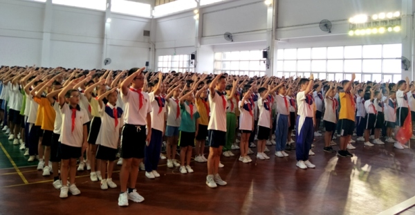 2019年9月2日上午,中山市永寧中學在體育館舉行了“五星紅旗,我為你自豪”主題開學典禮。永寧中學陳清茂校長、陳華梁副校長、楊青華副校長、各部門負責人及全體師生出席本次開學典禮。活動由教導處龍小紅主任主持。