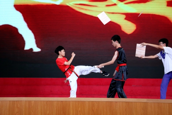 文藝匯演節目豐富多彩,精彩紛呈。三(3)班的朗誦《畢業心聲》聲情并茂,傾訴了全體初三學子們的心聲;三(1)班的武術表演《武術少年》緊張激烈,展現了中華武術的非凡魅力;三(2)班的街舞旋轉飛舞,揮灑自如,博得全場陣陣歡呼聲、尖叫聲……