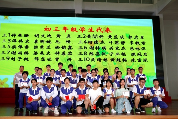 首先,劉鵬校長致辭。劉校長衷心感謝初三全體教師辛勤付出,衷心祝愿初三學子們都能夠實現自己的理想,希望同學們常回母校看看。劉校長并為學生代表頒發畢業證書。緊接著,龍小紅主任宣讀優秀畢業生名單,并為他們頒獎。