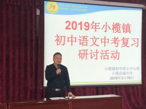 3月19日上午,小欖鎮初中語文中考復習研討活動在小欖花城中學階梯室舉行。中山市教體局教育教學研究室教研員張寶華老師、小欖鎮教育事務指導中心副主任曾文春、教研員盧和海以及小欖鎮全體語文老師參加了本次教研活動。
