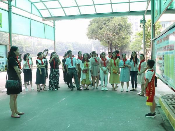 分享匯報結(jié)束后,大家一起觀摩了校園益智游戲活動、紅領(lǐng)巾社團(tuán)活動。大家還參觀了少先隊陣地。在大隊室,菊城小學(xué)的“全員旗手檔案”“隊籍管理”“大隊委筆記”“雛菊爭章”等項目,深深地吸引了大家。小講解員們也紛紛給客人們講解介紹。