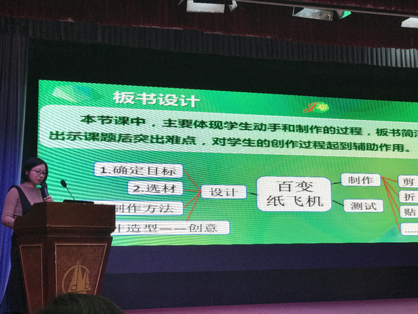 然后是科創與STEM課例展示。在這個環節,菊城小學邵琳老師的錄像課《百變紙飛機》、李勇燦老師的錄像課《我的方向我做主》向各位與會專家與老師們做了展示,邵琳老師還對這兩節課進行了說課。