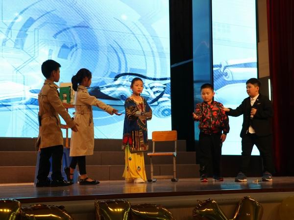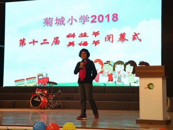 本屆校園科技節閉幕式與校園英語節閉幕式同臺展出,并在菊城小學體育館內舉行。閉幕式現場里,生動有趣的科學秀表演,引起了臺下的同學們的連連喝彩,精彩絕倫的科普劇表演,加深了同學們對前沿科學的認識。在閉幕式的最后,陳玉玲校長發表了講話,并對本屆校園科技節給予了高度的肯定。