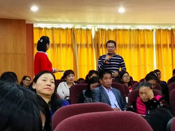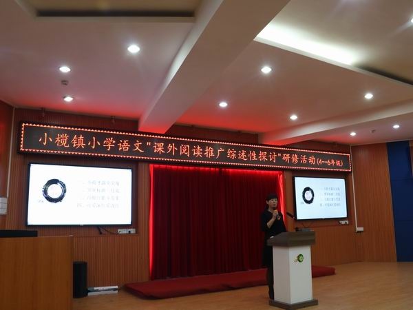 第三個環節是由小欖鎮中心小學楊廣平老師作題為《映日荷花別樣紅》的閱讀講座。楊老師從“起始階段”、“逐漸發展”、“深層推進”、“全面開花”四方面回顧小欖鎮“閱讀推廣”工作歷程,從營造閱讀環境、閱讀時間到閱讀方法的指導以及閱讀活動的開展進行詳細解說,根據六年級的特點介紹“主輔兩線閱讀”策略。報告會內容豐富,精彩紛呈,讓在座的老師受益匪淺。
