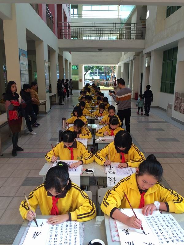 12月15日,天公作美,冬日的暖陽一掃往日陰霾,菊城小學舉行了“欖菊杯”現(xiàn)場書法比賽,包括教師、學生和家長在內(nèi)的五百多人同時上陣,場面煞是震撼!