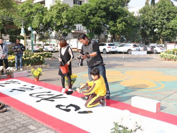 本次活動得到了“欖菊”集團、廣東欖菊書法院的大力支持,欖菊集團總裁駱建華先生、欖菊書法院駱培華院長、中國書法家協(xié)會會員李軍、中國書法家協(xié)會會員黃真武、菊城小學陳玉玲校長、以及社會各界書法愛好者參加了本次活動。