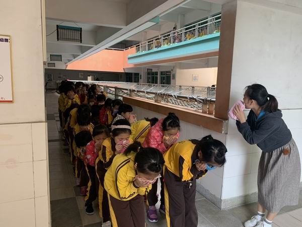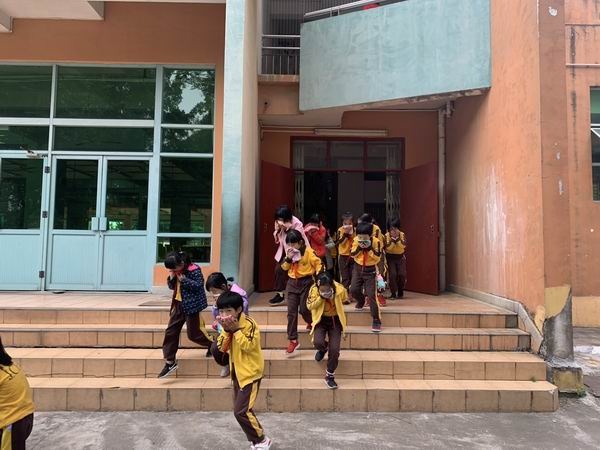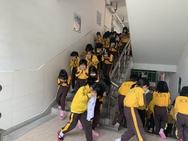 中午一點十分,隨著警報聲的響起,各班老師和樓層負責人第一時間到達指定位置,組織學生用水沾濕手帕捂住口鼻,彎腰按疏散路線有序撤離,順利到達空曠的安全地帶,演練共用時約3分鐘。隨后,各班生活老師核實了班級學生人數,無推擠或踩踏事故,一千多名師生全部安全疏散。整個疏散演練緊張有序、效果良好。