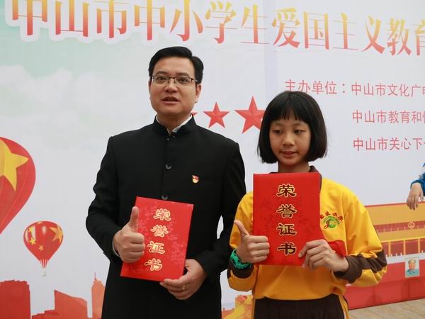 大會上,組委會還對展演隊伍和征文特等獎、優秀指導老師進行了頒獎,授予菊城小學優秀組織獎,六(1)班陳汶希同學獲征文特等獎、語文教師曾冬梅獲優秀指導老師獎。歷時10個月的愛國主義教育電影進校園、觀后感征文和紅歌傳唱系列活動,在取得豐碩成果中落下帷幕。