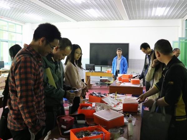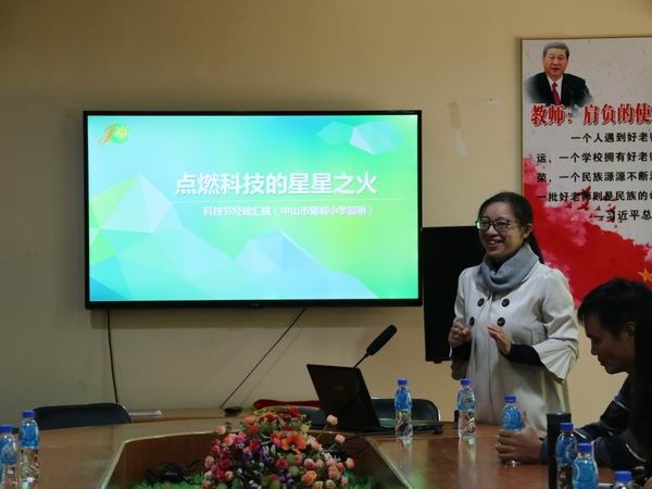 聆聽完馮部長的講座之后,菊城小學邵琳老師代表菊城小學科技團隊做了科技節經驗介紹。最后黃圃鎮科學骨干教師一行參觀了菊城小學的科技室場。菊城小學簡單樸實卻能很好契合科技教育及科學校園的科教功能室場和便于開展科教活動的校園環境讓教師們若有所思。