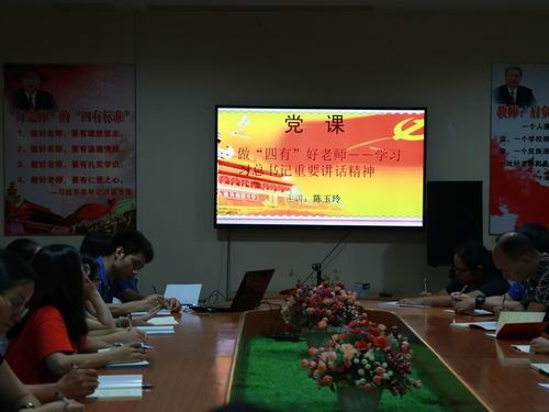 2018年9月7日下午6:00,菊城小學(xué)黨支部在該校黨員活動(dòng)室舉辦了“不忘初心,爭(zhēng)做四有好老師”專題黨課。校長兼支部書記陳玉玲親自為教師黨員、非黨員行政、入黨積極分子、骨干老師等上黨課,會(huì)議由副主任、支部組織委員劉曉俊主持。
