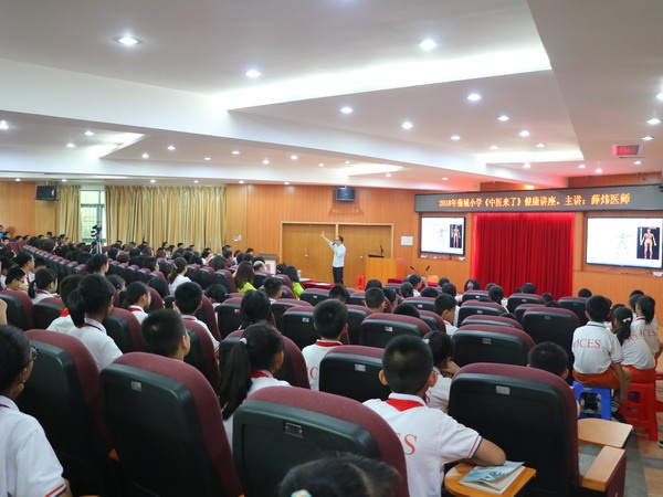 為響應習總書記:“中醫(yī)藥學是中國古代科學的瑰寶,也是打開中華文明寶庫的鑰匙”的號召,也為進一步弘揚國學精髓,5月4日下午3點,中山市菊城小學特邀請來自廣州的主治中醫(yī)師薛煒醫(yī)生到校作“中醫(yī)藥文化進校園”主題講座。參加聆聽講座的有陳玉玲校長、劉云濤副校長、五年級分管行政劉曉俊主任;校“女子蘭花協(xié)會”成員及部分家長代表和五年級全體“葫蘆娃”和相關老師也參加聆聽。