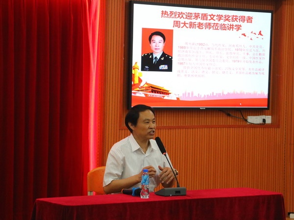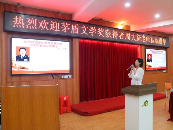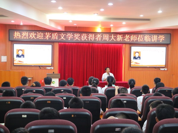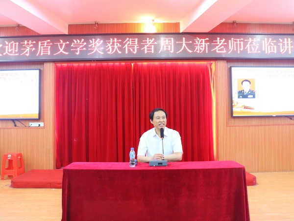 4月23日上午,著名作家、茅盾文學獎得主周大新老師蒞臨菊城小學,在階梯教室為六年級師生講學,菊城小學陳玉玲校長、劉云濤副校長也來到了講學現場認真聆聽。