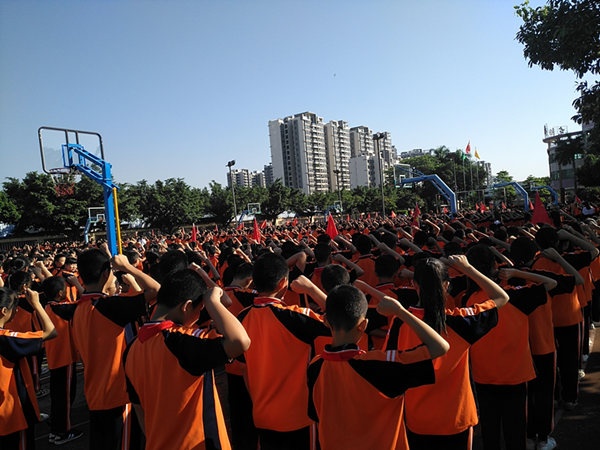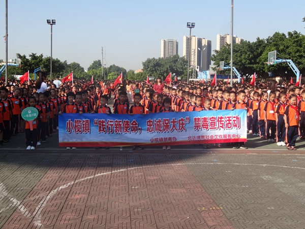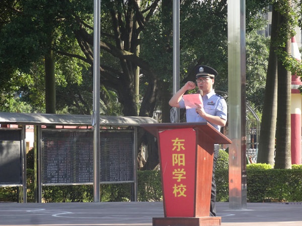 為了讓各位同學提高禁毒意識,保護自身健康,9月23日上午,東陽學校利用升旗儀式集會時間邀請到小欖聯安派出所駐九洲基社區警長何永光先生,九洲基禁毒專干、以及小欖鎮禁毒社工帶領全校師生向毒品發出宣誓,向毒品說“不”。何警官首先介紹了毒品的危害,教育同學們要遠離毒品,接著帶領同學們莊嚴宣誓,抵制毒品。