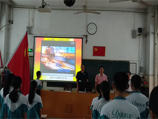 入團儀式開始后,首先全體肅立并奏唱國歌,全體老師和團員在國歌聲中唱出自豪。隨后黃記英輔導員指出共青團是中國共產黨的后備力量,并對新團員們提出殷切的希望。隨后她宣布新團員名單,并為他們發放團證和團徽,并在團旗下莊嚴宣誓。在火紅的團旗下,每位團員都表明要為共產主義事業而奮斗的決心。宣誓完畢后,老團員代表朱銀蘭同學發表入團之后的感想,粟宇峰同學講述了團員的權利和義務。緊接著劉校長也作了講話,他希望每個團員要以能夠加入共青團為榮,嚴格要求自己,做好模范帶頭作用。隨后新團員黃彩紅同學也發表了自己的感想,希望每位同學都應以加入共青團而感到自豪。團支部還表彰了2018年優秀共青團員,希望全體團員向他們學習,做一個優秀的共青團員。最后在全體團員觀看了爭做四有青年影片和歌唱《光榮啊,中國共青團》團歌,歷時一個小時的新團員入團儀式在團歌聲中結束。